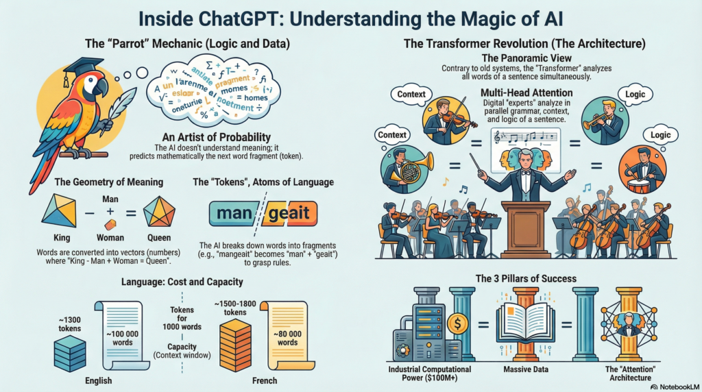 This technical revelation takes nothing away from the magic of these systems. On the contrary, it reveals the hidden sophistication behind the apparent simplicity of “word prediction.” Token by token, these machines recompose the richness of human language with precision bordering on art.